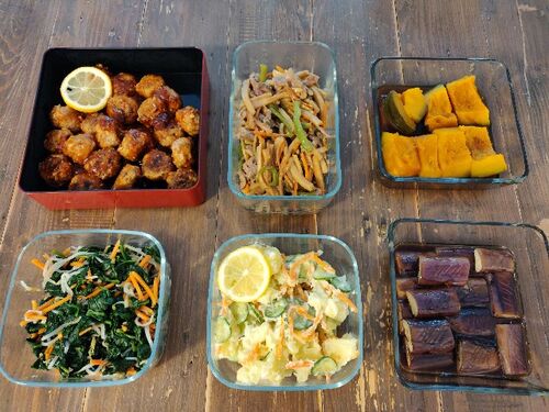 本日の作り置きは、朝の部を除き、ささっと(ささっと、とは言わないかな・・・)1時間半で終了しました。朝息子を学校に送る前に肉団子の甘酢あんを作っておきました。持っているフライパンは大小2個、鍋は小中大と3個なので、作る手際も考えると朝一品出来…
