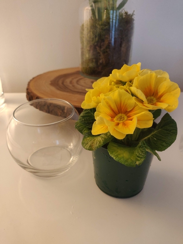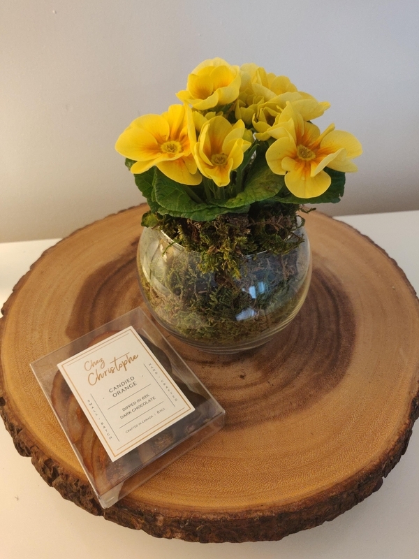 前回は、バンクーバーで買える台湾のお茶をお礼というほどでもないけど、別の機会に渡したら喜んでもらえて。今回はこれにします↓スーパーで売っている花の苗とガラスの器、モスを使ってアレンジしました。